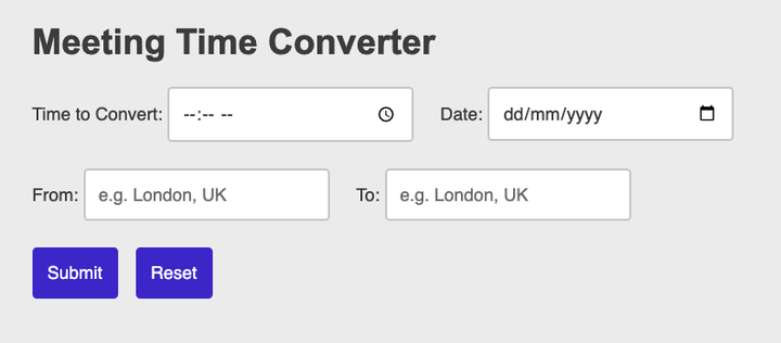 Simply enter the data, time, and location of the original meeting, and the location you want the meeting localised to, and hit Submit!